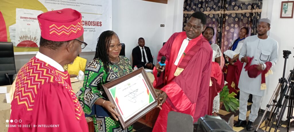 « Face à l’adversité, elle a su faire preuve de détermination construisant pas à pas ses différents chantiers » salue le professeur Magloire Lanha, président du comité d’organisation. Il s’agit du « chantier d’enseignante qui forme à la responsabilité ; chantier de chercheure qui crée de la connaissance ; chantier de femme qui revendique l’égalité des droits et la complémentarité dans l’action ».