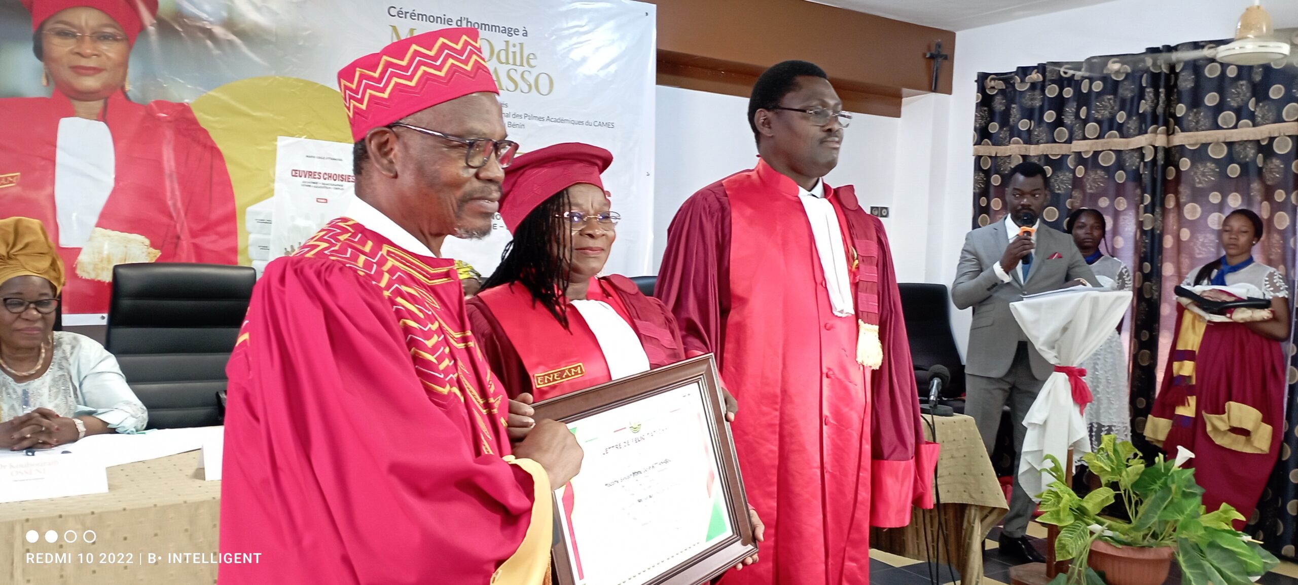 Marie Odile Atanasso est commandeur de l’Ordre international des palmes académiques du Cames et de l’Ordre national du Bénin. « Elle a contribué au développement de l’Enseignement supérieur et de la recherche scientifique au Bénin, contribué à la promotion du genre » souligne le président du présidium professeur Achille Massougbodji.