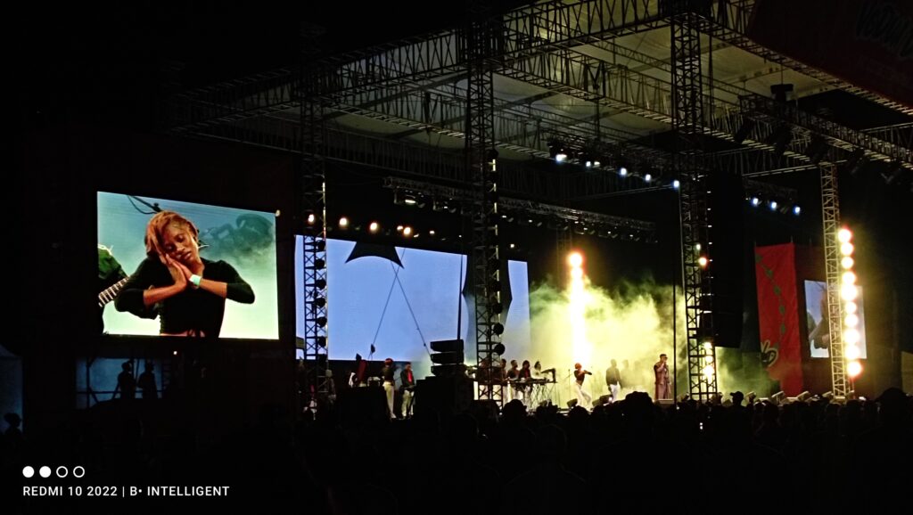 L’une des têtes d’affiche annoncées pour ce concert vient un peu après 00h. Yemi Aladé, agile et dévouée sur la scène appâte le public sur des morceaux phares dont Johnny, Shekere (son featuring avec la diva Angelique Kidjo) ou encore Ferrari, Nagode.