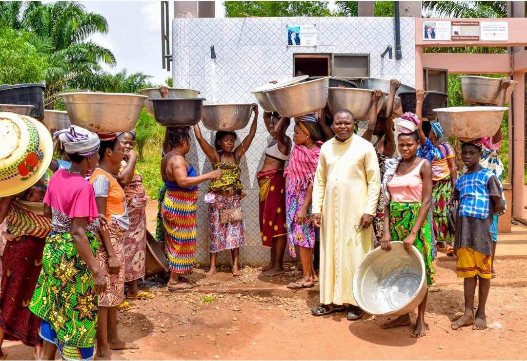 Dans un tel contexte, les habitants de ce village de la commune de Za-Kpota saisissent la Caritas diocésaine d’Abomey qui, à son tour, sollicite l’appui de Gruppo Missionario Merano, une association italienne. En février 2023, la population de Koguédé réceptionne émerveillée l’infrastructure. « Un forage muni d’un château composé de deux tanks de 5000 litres chacun et d’un système de pompage solaire » décrit le père Jérôme Boko, directeur diocésain de la Caritas, qui précise que c’est le 12e ouvrage du genre implanté dans des villages du diocèse grâce à ce partenariat.