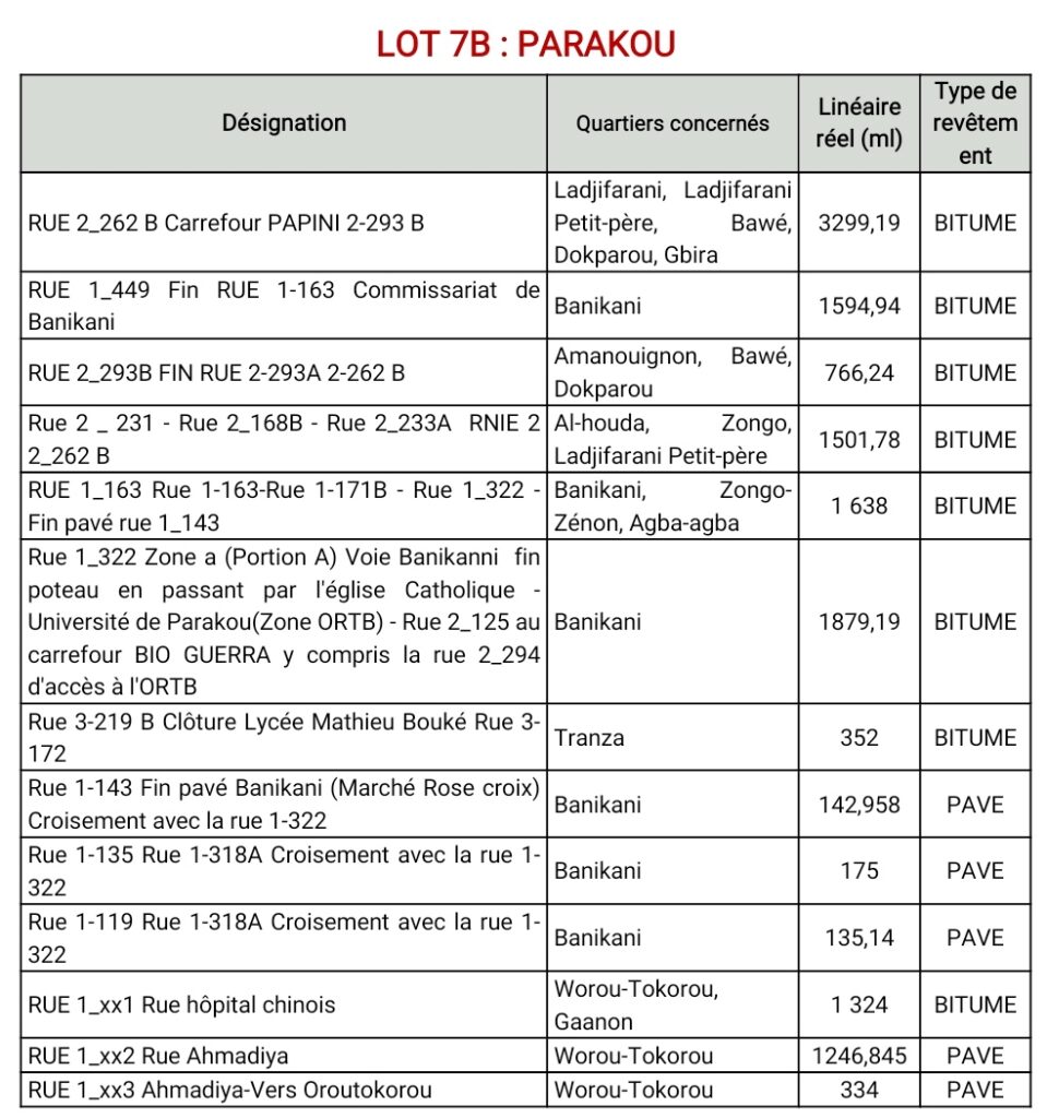 L’investissement financier est encore plus colossal quant à la ville de Parakou. Il s’élève à 51,3 milliards de francs Cfa. Dans cette plus grande ville du septentrion, les réalisations comprennent 19.26 km de voirie urbaine, soit plus de deux fois le linéaire de la phase A. De plus, 11.87 km de collecteur d’eau pluvial, 3100 arbres d’alignements et 1540 lampadaires solaires.