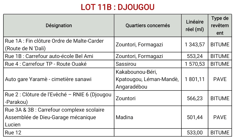 Enfin, Djougou. Il y est prévu la construction de 13.25 km de voirie urbaine. Soit plus de deux fois lors de la phase A. La ville sera également dotée à terme, de 7.36 km de collecteurs d’eau pluviale, 2120 arbres d’alignements et 1060 lampadaires solaires. Le budget à cette étape s’élève à 22,15 milliards de francs Cfa.