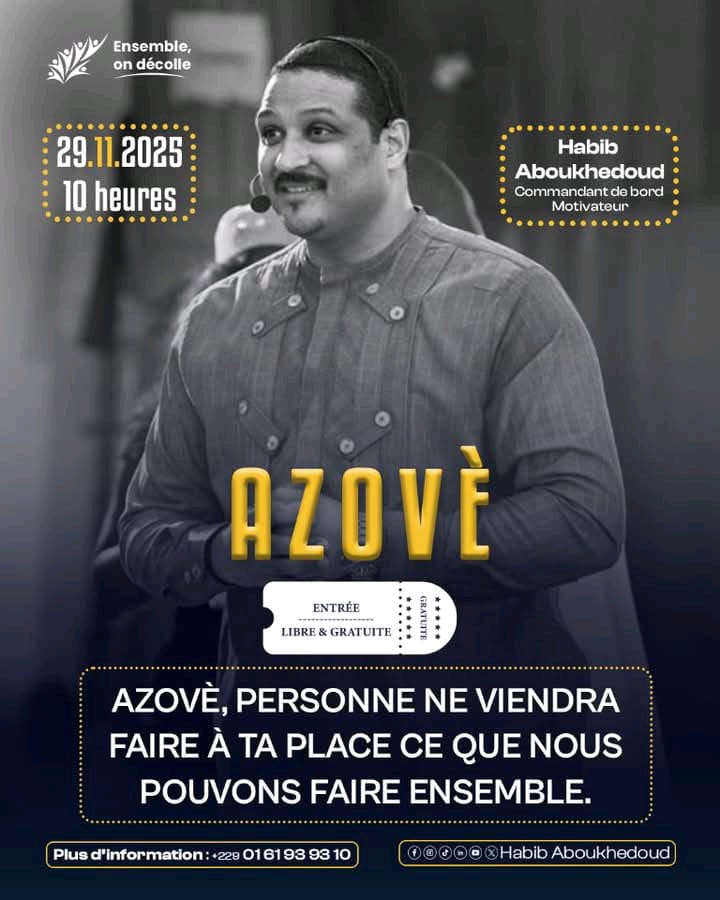 « Azovè et Porto-Novo, poursuit-il, sont donc des étapes cruciales dans cette vision ». Entièrement gratuite et ouverte au public, la rencontre d’Azovè promet d’être un moment fort pour stimuler l’esprit d’entreprise et l’engagement civique.