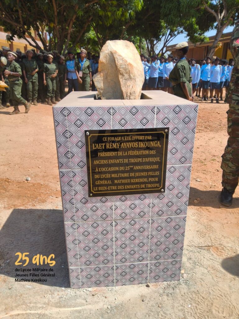 Moment phare de la tournée, la pose de la première pierre d’un forage destiné au lycée, un don du Dr Rémy Ayayos Ikounga, président de la Fédération des anciens enfants de troupe d’Afrique (Faeta). Ce geste a été présenté comme une initiative visant à renforcer les infrastructures et améliorer les conditions de vie des élèves, illustrant la solidarité constante des anciens enfants de troupe envers leurs écoles.